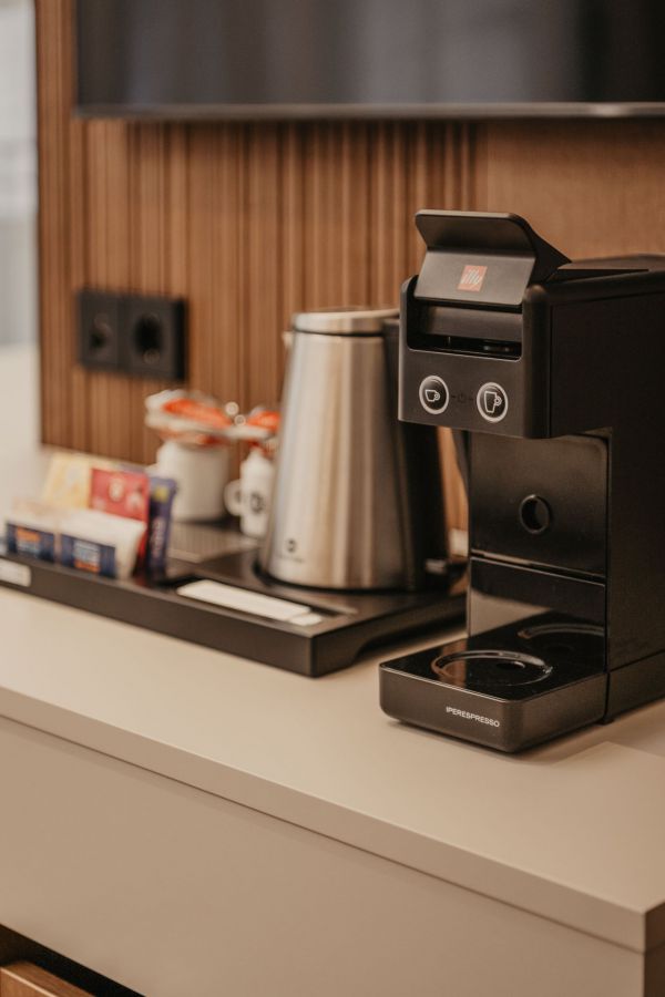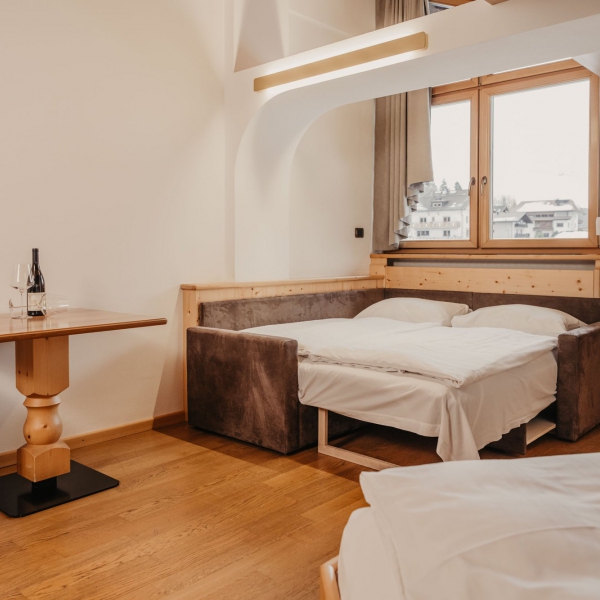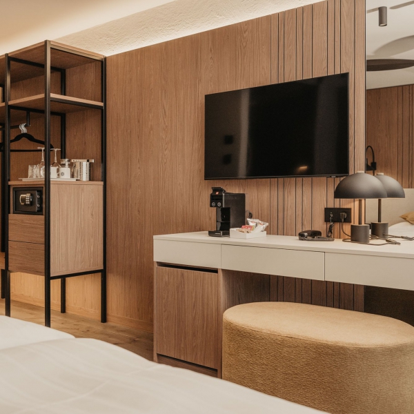 Le camere dell'Hotel Hell offrono una splendida vista su Ortisei, sui prati circostanti e sulle Dolomiti, creando un'atmosfera di relax fin dal primo momento. Ogni ambiente è curato nei minimi dettagli e dotato di tutto il necessario per rendere il tuo soggiorno confortevole: minibar rifornibile su richiesta, cassaforte, macchina da caffè Illy, bollitore elettrico e caraffe per l'acqua. A tua disposizione ci sono morbidi accappatoi, ciabatte e un asciugacapelli, oltre a una TV e a una connessione Wi-Fi veloce. Al secondo piano si trovano anche servizi comuni pratici e moderni: una macchina del ghiaccio, un distributore di acqua naturale e frizzante filtrata e un angolo stiratura.
